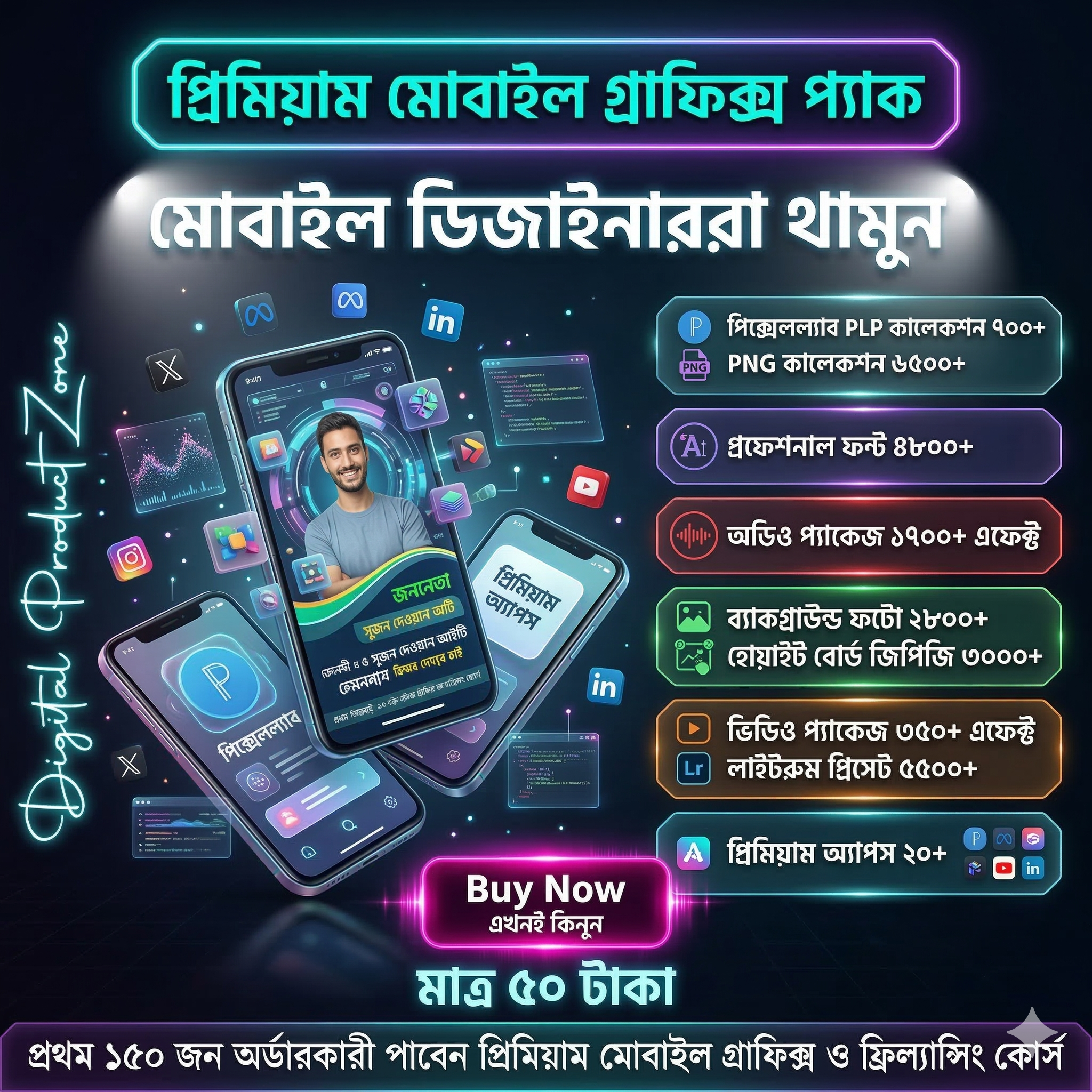 ✅ প্রিমিয়াম মোবাইল গ্রাফিক্স ডিজাইন  এবং ফ্রিল্যান্সিং এর একটি ফুল কোর্স